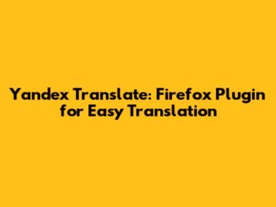 What is the Yandex Translate Firefox Plugin?